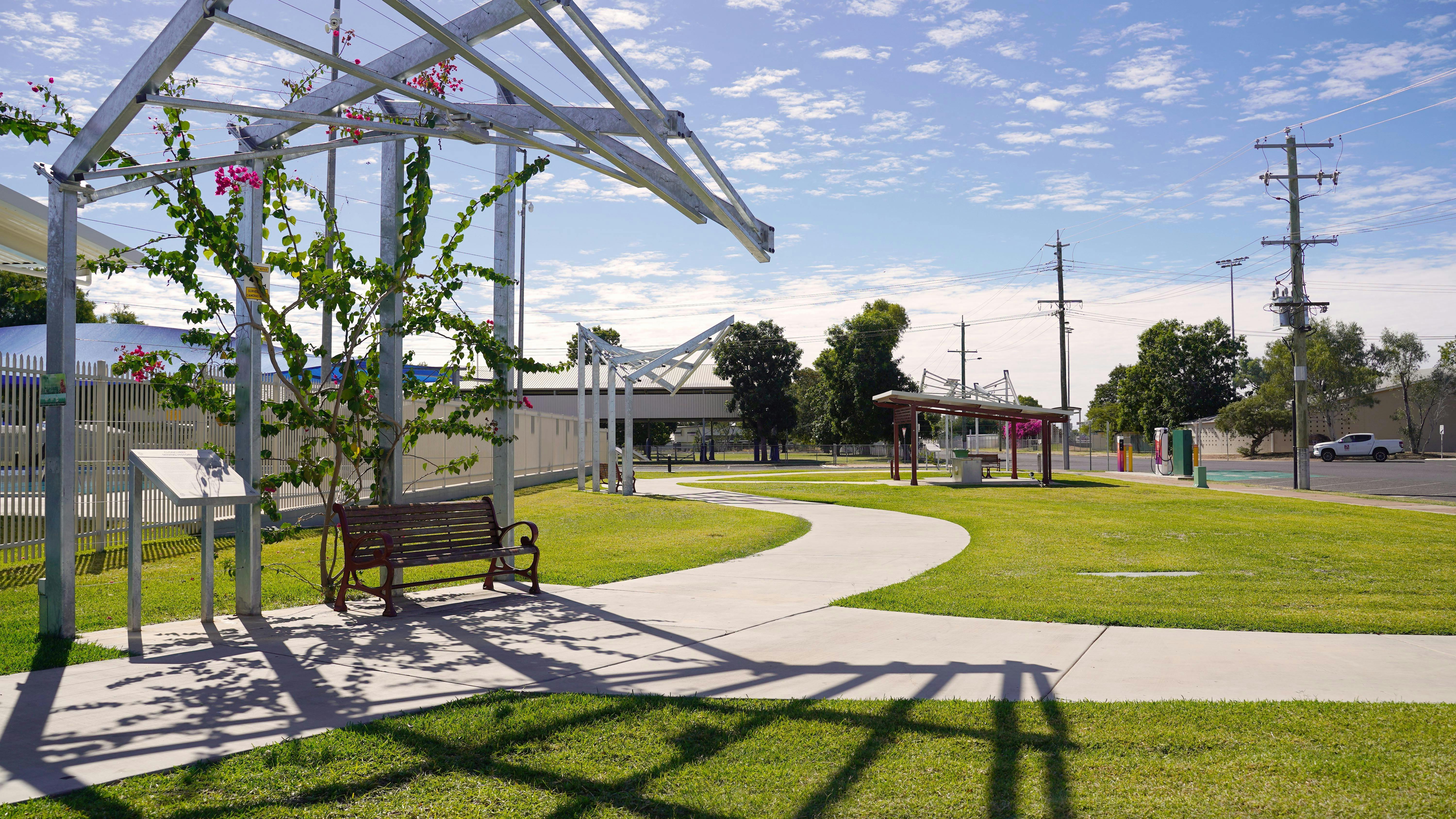 Florence Clark Park is a great place for a family picnic. Located in the centre of Cloncurry, with oversized vehicle parking nearby, it is the perfect place to stretch your legs. There are plenty of cafes within walking distance of the park, so grab a takeaway coffee and let the kids burn off some energy. The park includes lush lawns, an undercover area, BBQs, a playground, skate-able furniture, a bike path, seating areas and amenities.